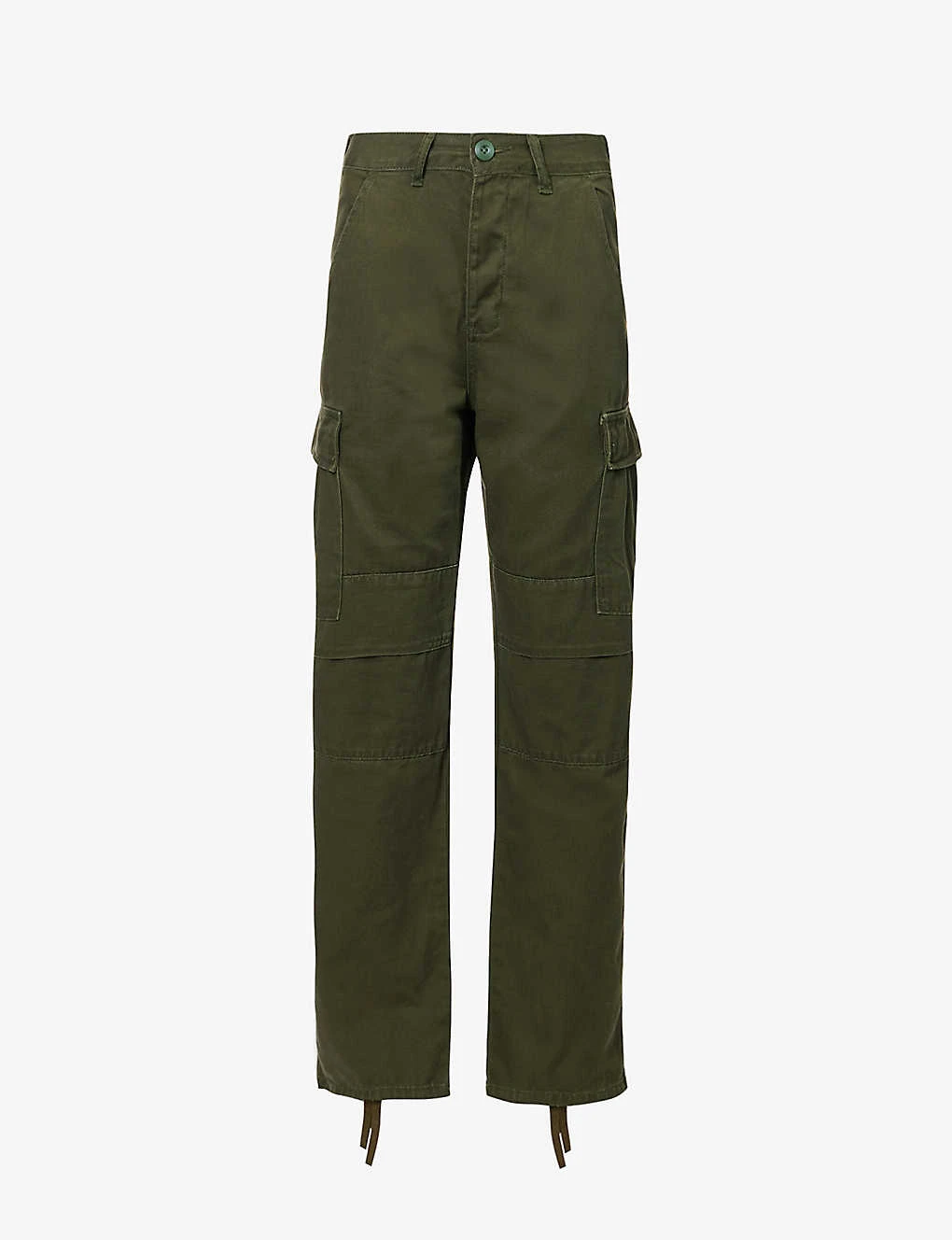 - Regular fit, mid-rise, straight leg, belt loops, two slip pockets at front, two flap pockets at leg, two flap pockets at back, drawstring hem