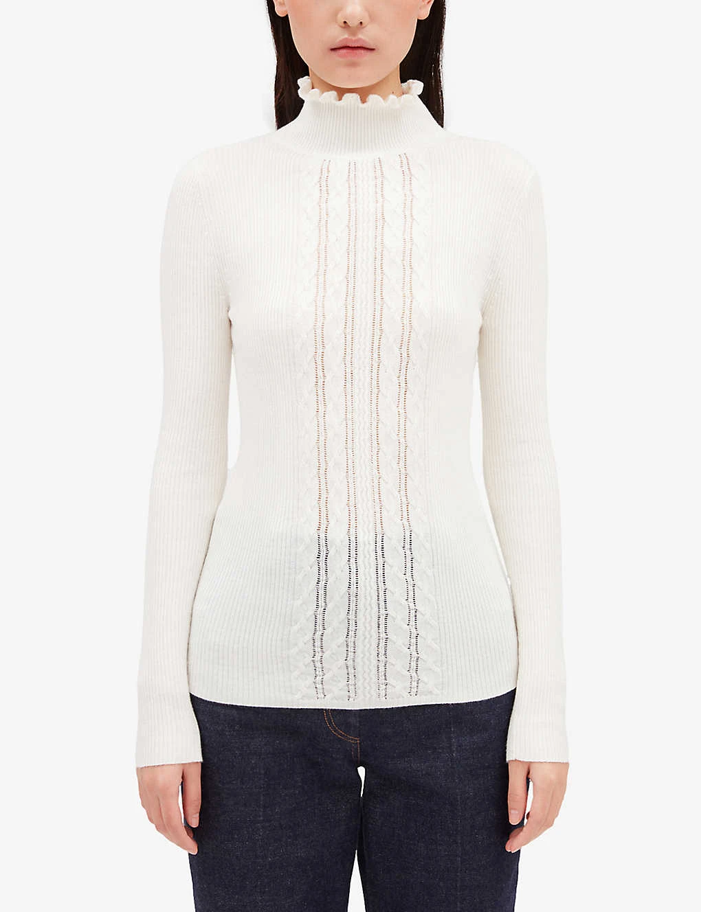 Be the first to review “CLAUDIE PIERLOT Ruffled-collar Scroll-pattern Knitted Jumper” Cancel reply