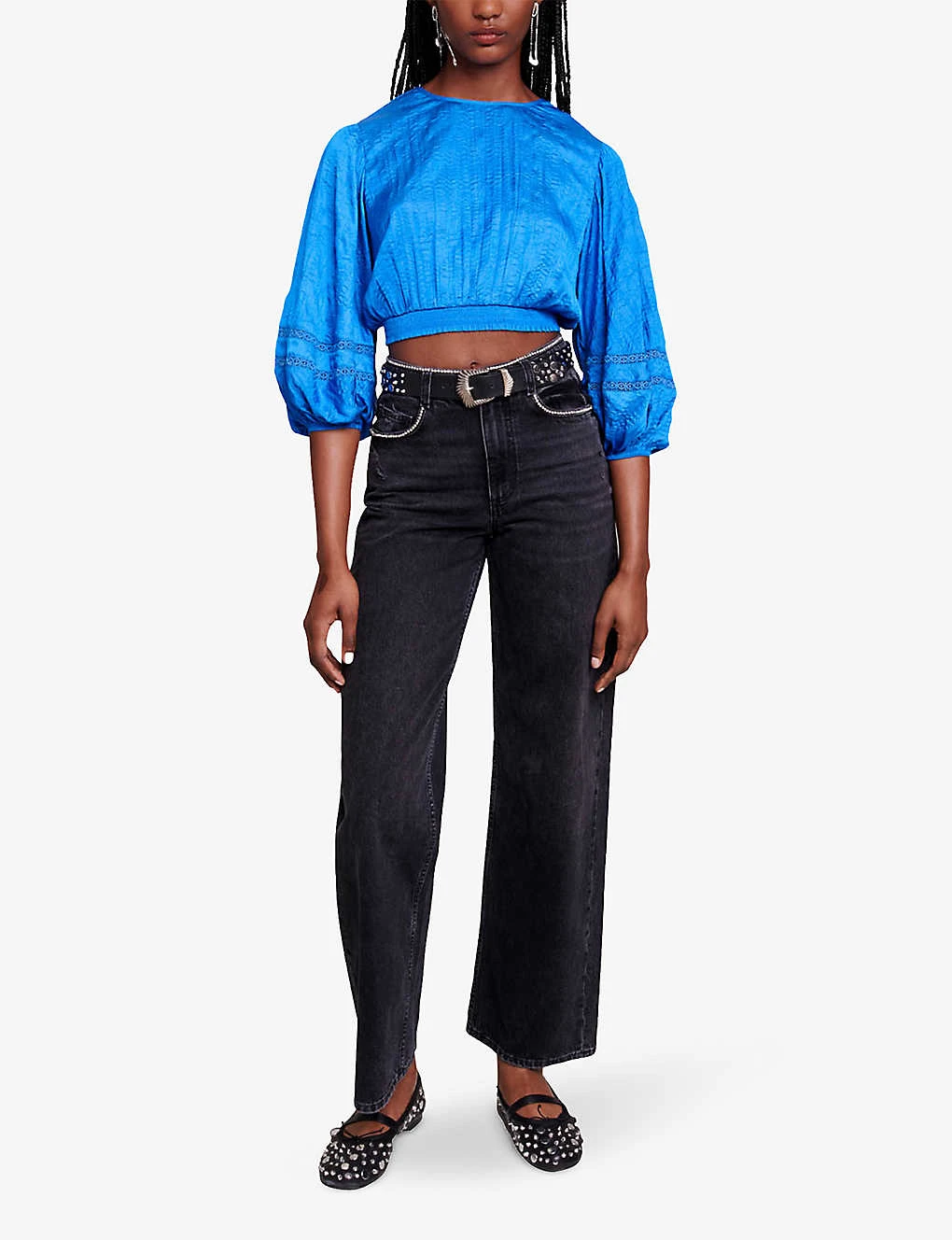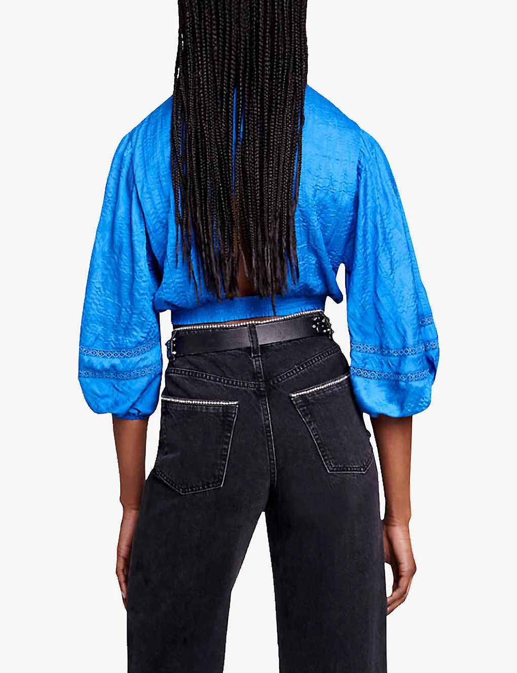 Be the first to review “Maje Lapra Puff-sleeve Open-work Satin Top” Cancel reply