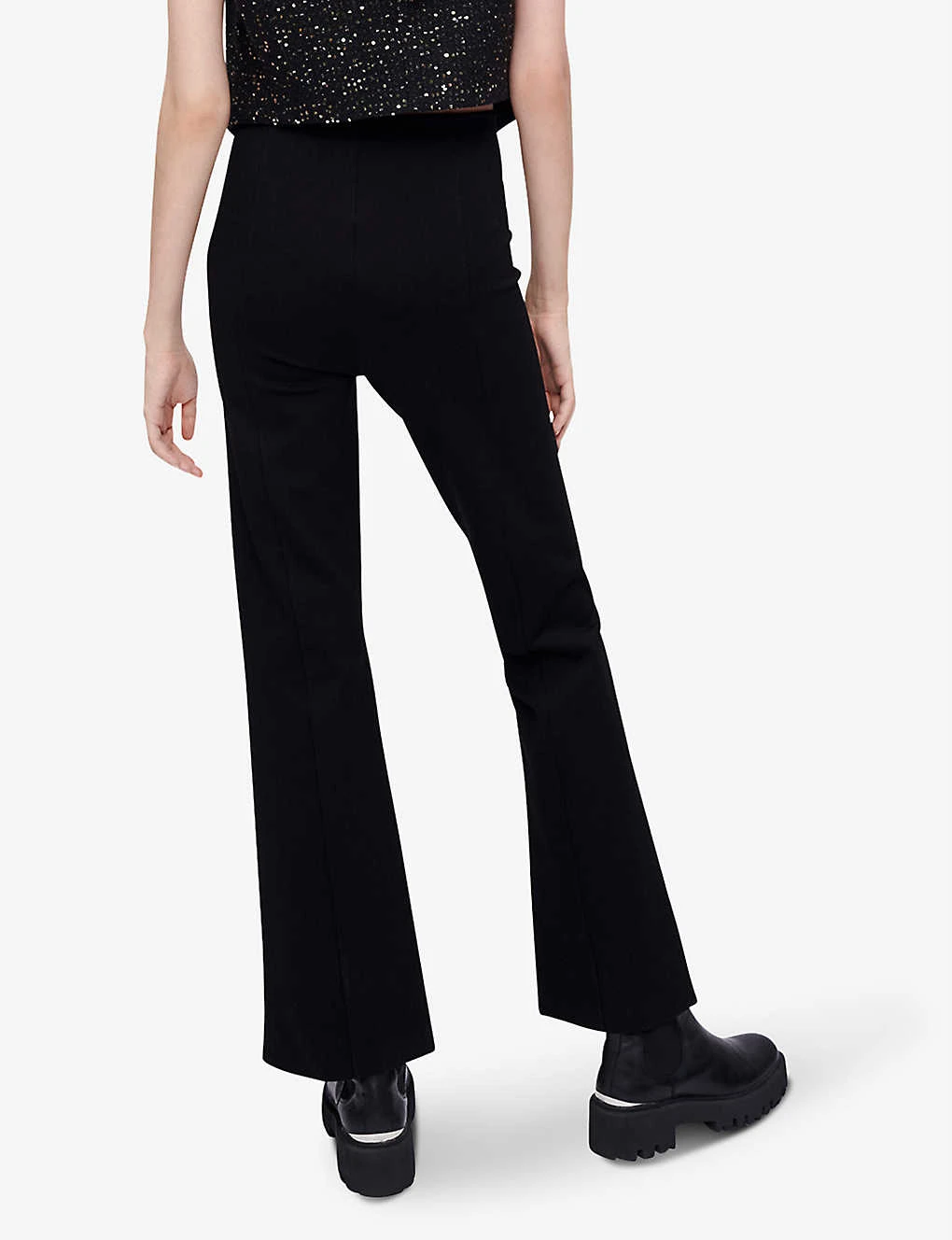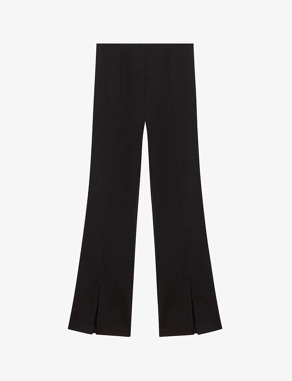 - Mid-rise, elasticated waistband, flared leg, slit at the cuffs