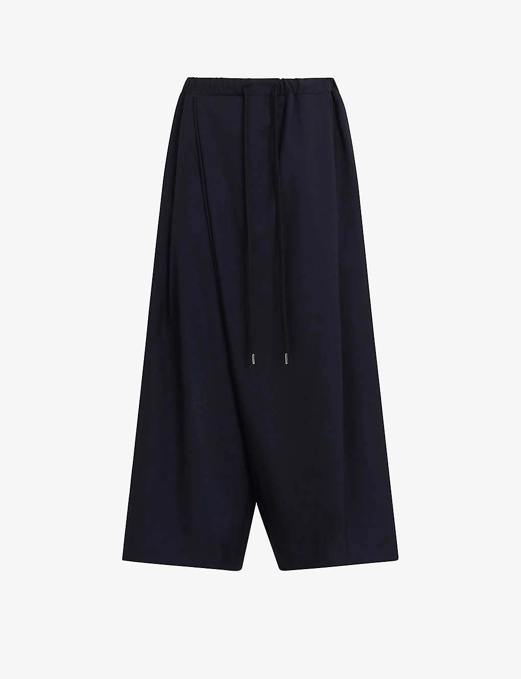 - Regular fit, wide leg, mid rise, elasticated drawstring waist, draped panel at front