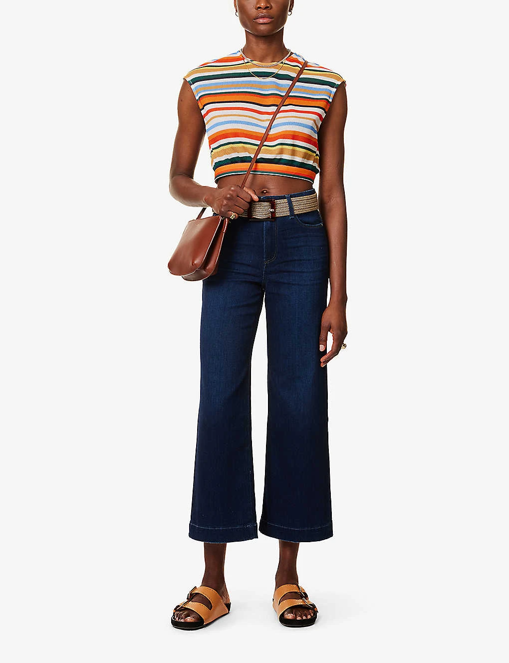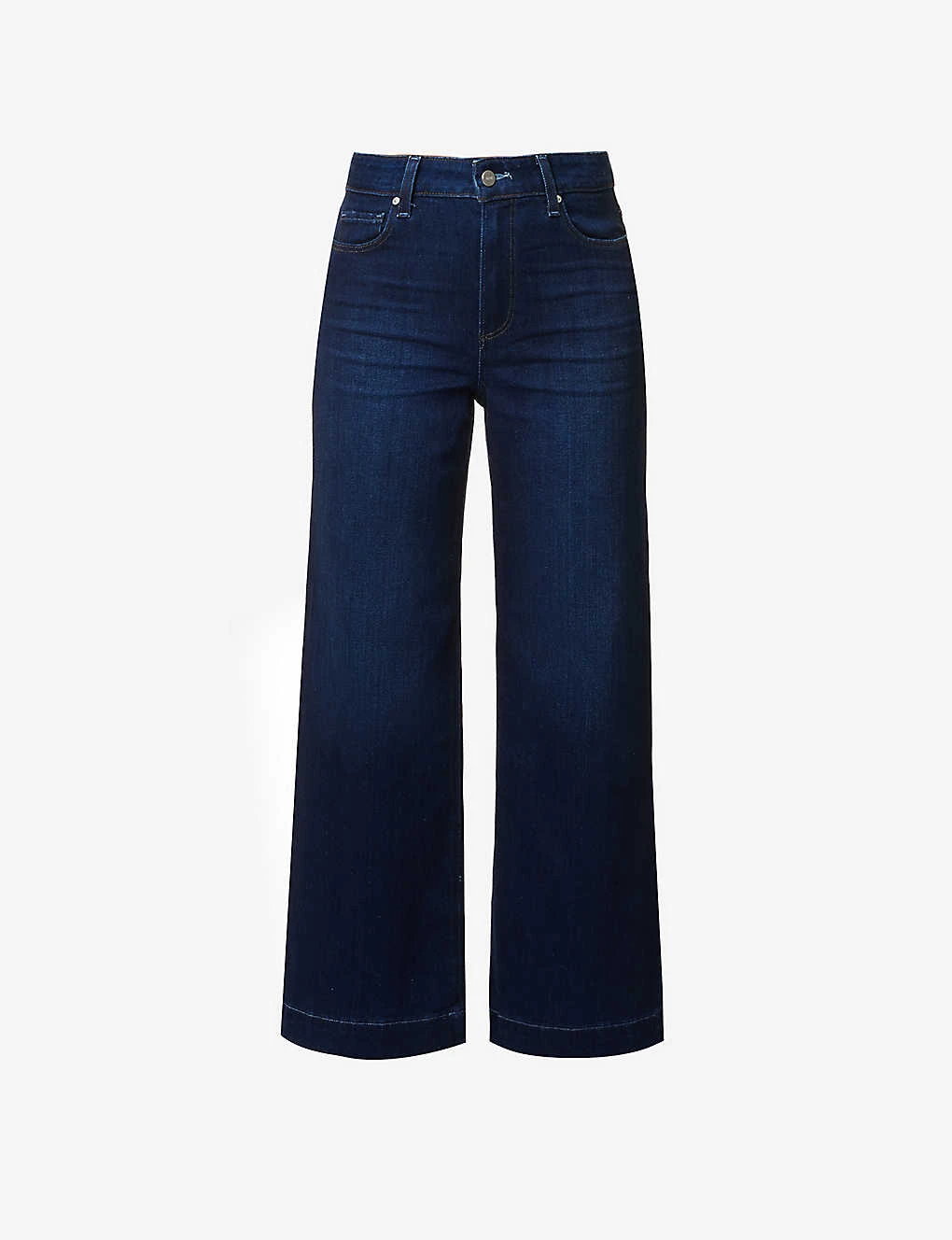 - Regular fit, mid-rise, wide leg, belt loops, branded silver-toned hardware, five pockets, pressed centre creases, cropped, brand patch at back