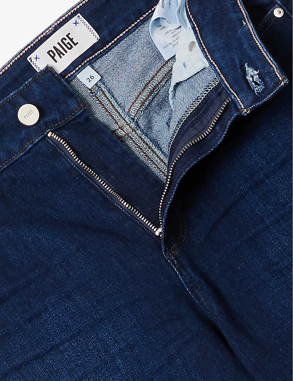 - Exposed button and concealed zip-fly fastening at front
