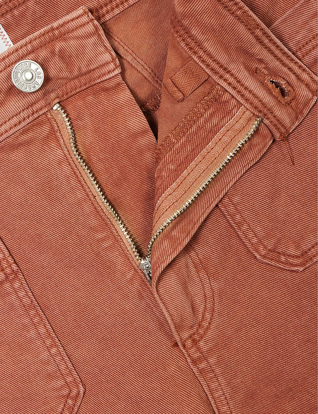 - Exposed button and concealed zip-fly fastening at front