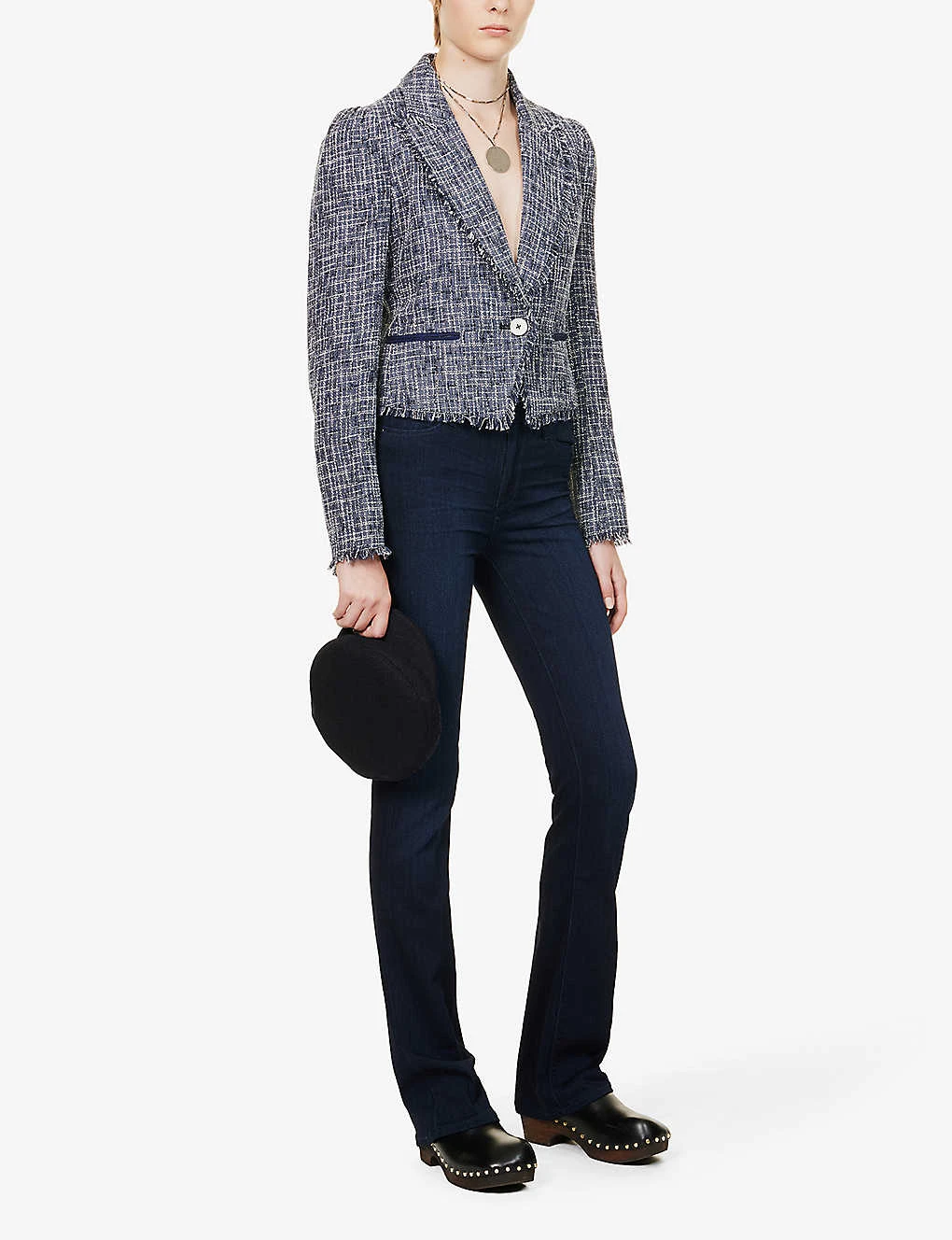 - Exposed button and concealed zip-fly fastening at front