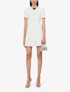 SELF PORTRAIT Lace-detail Short-sleeved Woven Mini Dress
