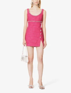 SELF PORTRAIT Button-embellished Contrast-trim Woven Mini Dress