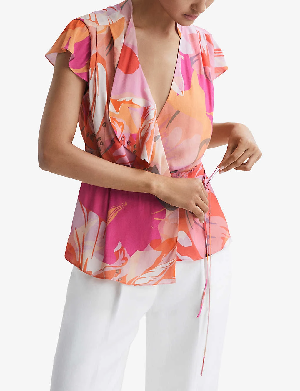 Be the first to review “Reiss Corey Tropical-print Wrap-around Woven Top” Cancel reply