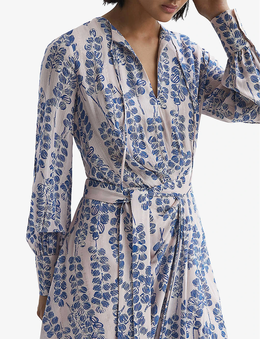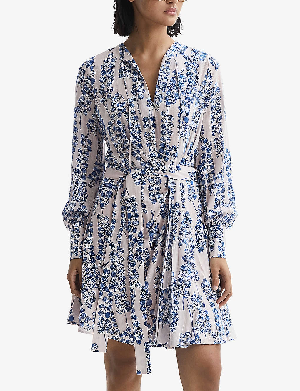 Be the first to review “Reiss Marine Leaf-print Metallic-lurex Woven Mini Dress” Cancel reply