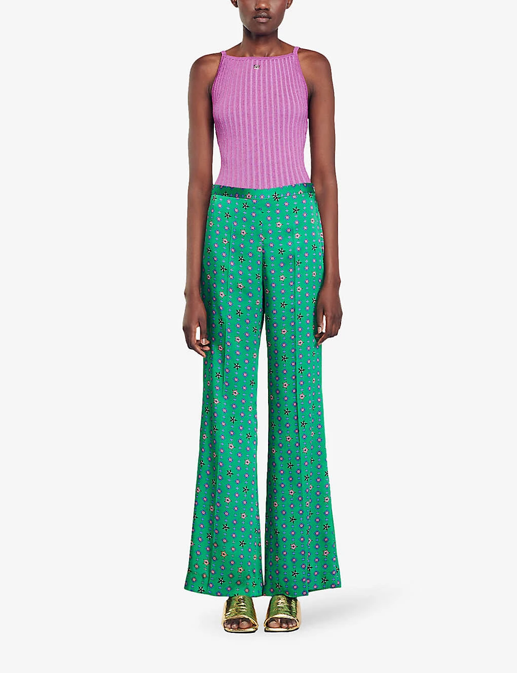 Be the first to review “Sandro Deschamps Graphic-print Wide-leg Mid-rise Satin Trousers” Cancel reply