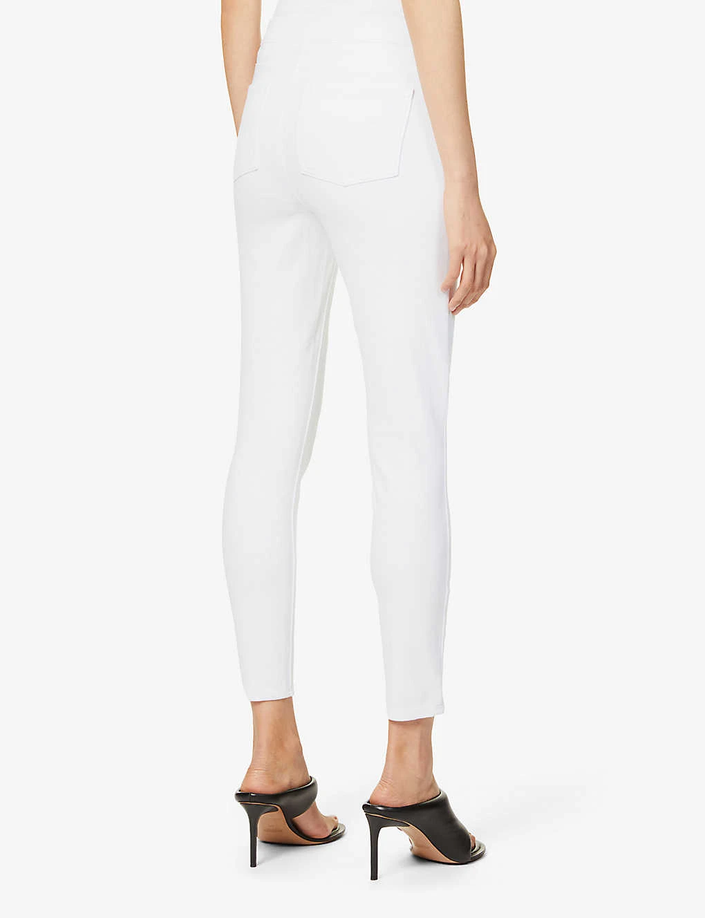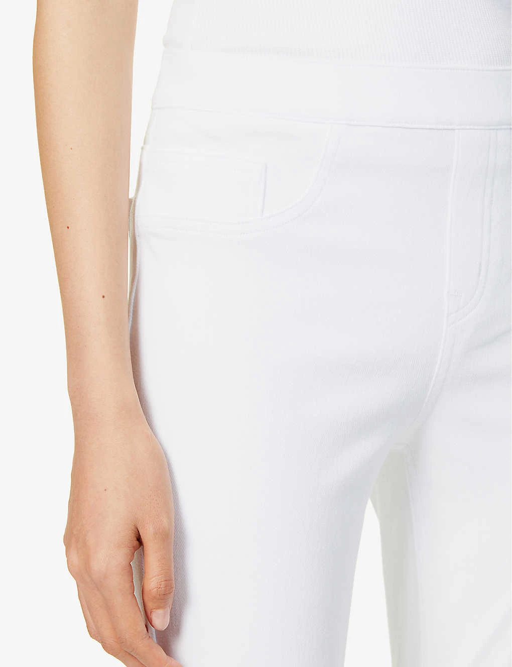 - Slim fit mid rise, slim leg, elasticated waistband, pocket design at front, two patch pockets at back, elasticated cuffs