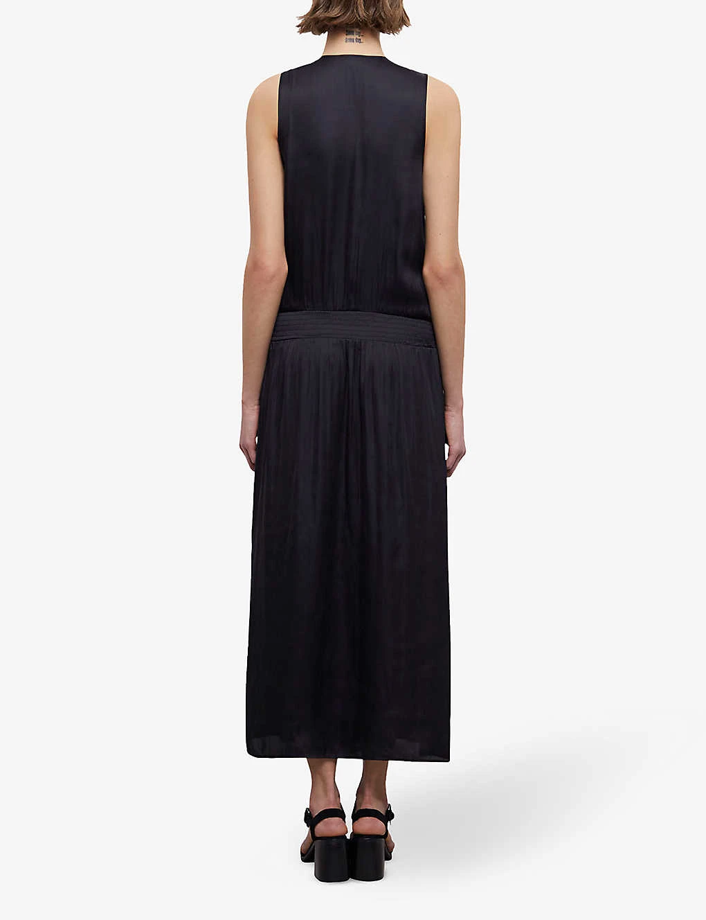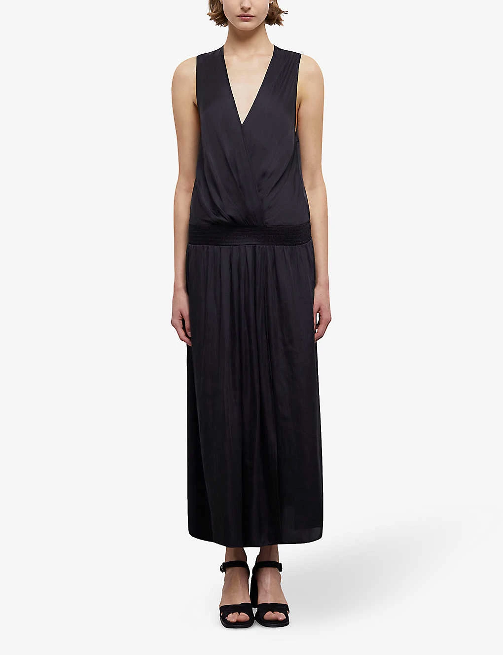 - Relaxed fit, sleeveless, plunge neck, flared hem, maxi length