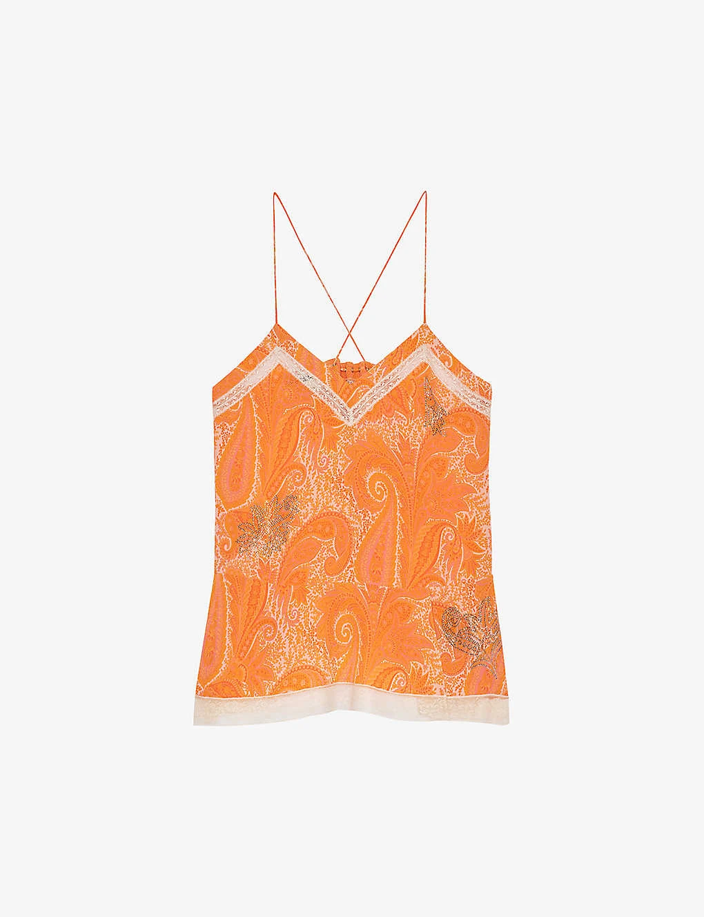 - Regular fit, V-neck, crossover straps, all-over paisley print, lace trims